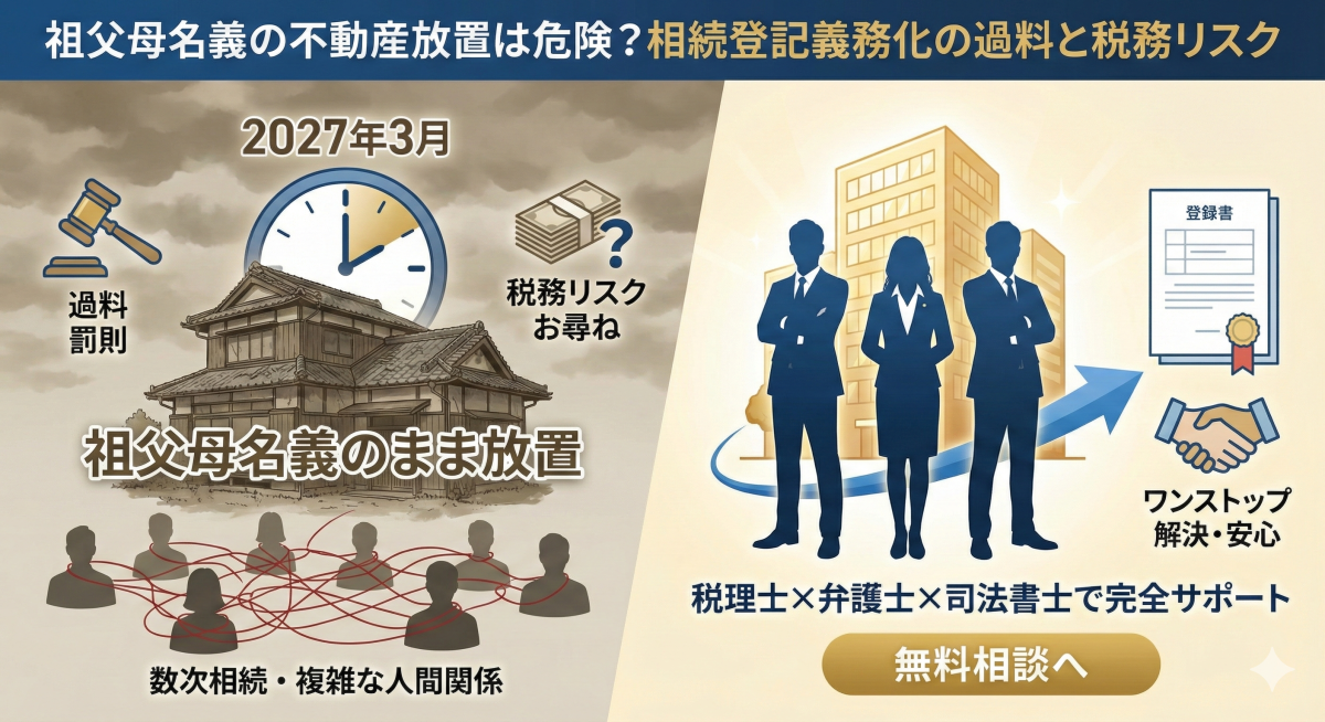 本記事では、相続登記義務化の最新ルールと、祖父母名義の不動産を放置するリスク、そして安心・確実に手続きを進めるための解決策をわかりやすく解説します。